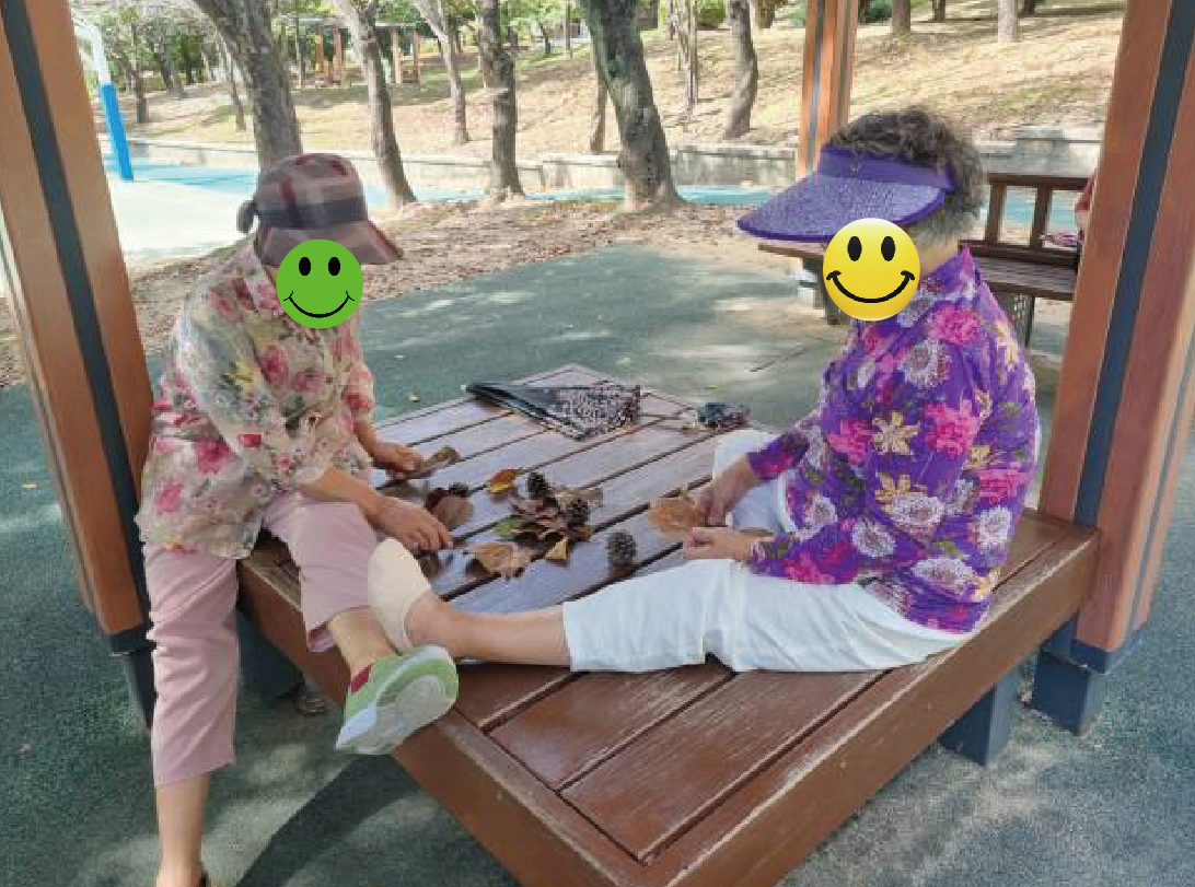 친구를 만나 요양보호사 선생님과 함께 공원산책하며
